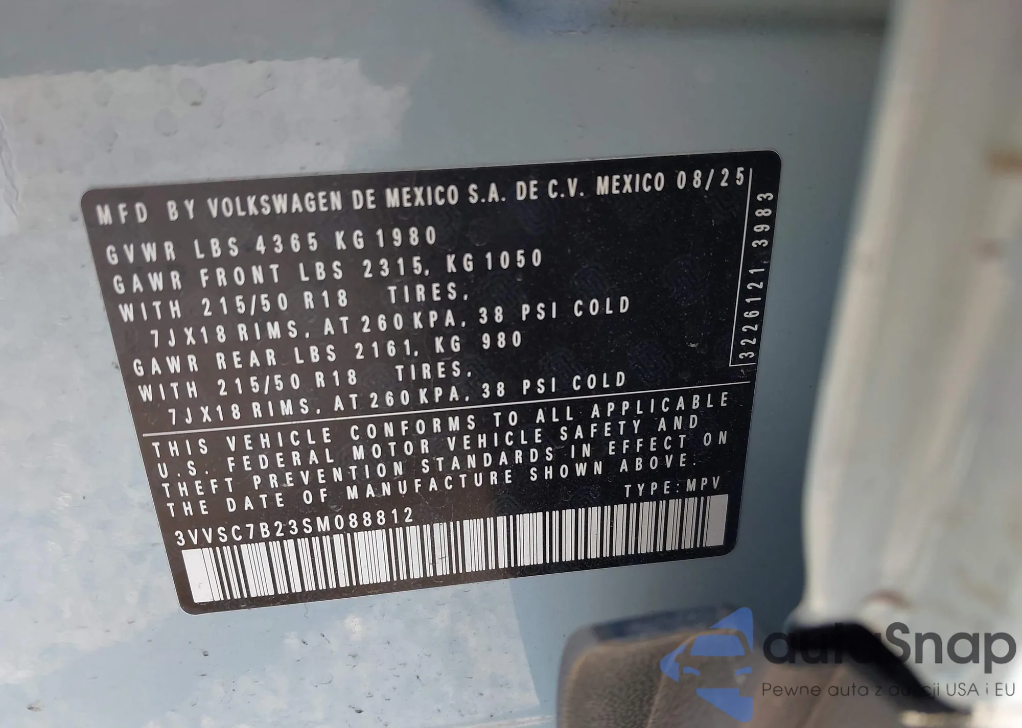 • VIN 3VV5C7B25SM054156