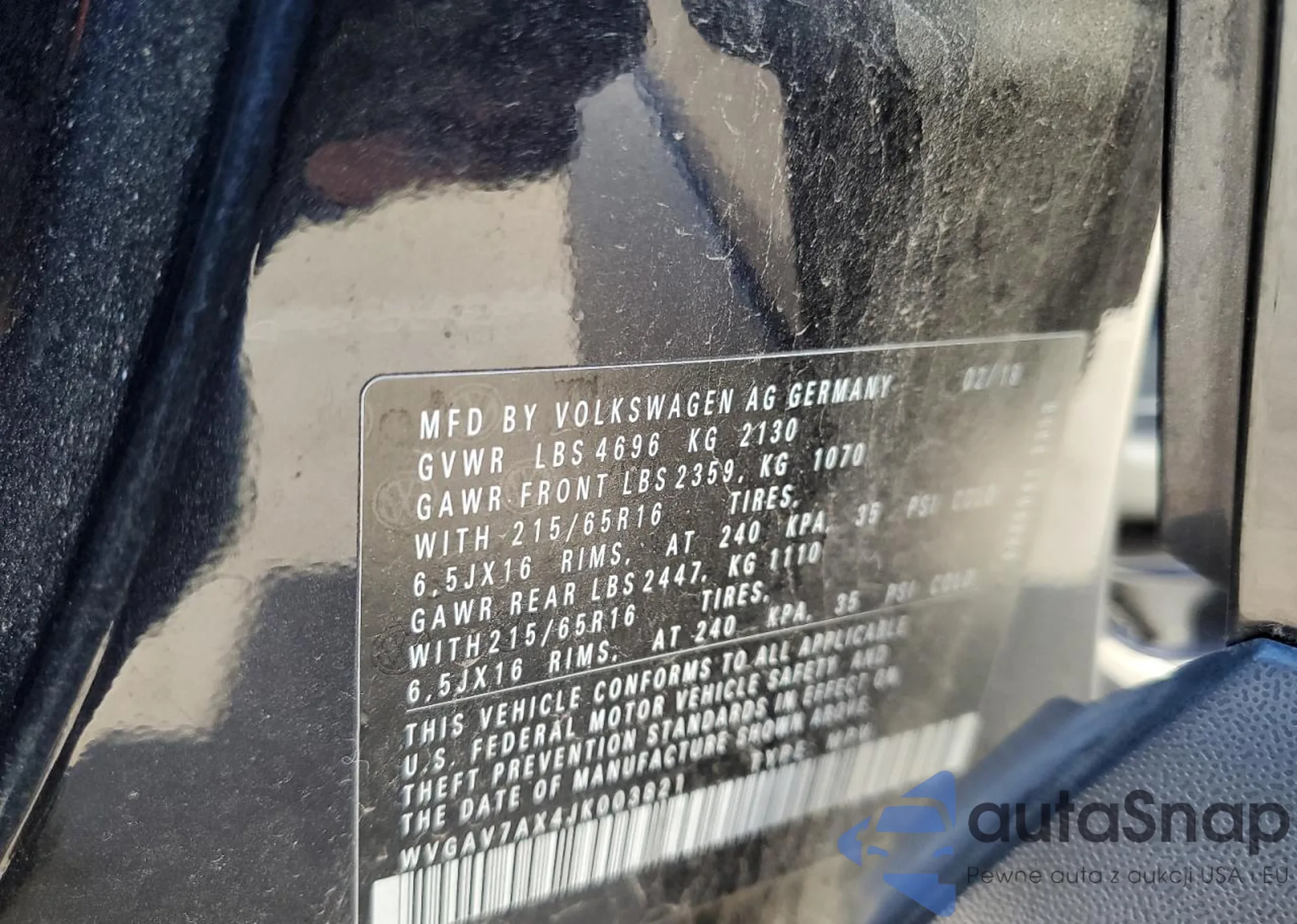 • VIN WVGAV7AX4JK003821