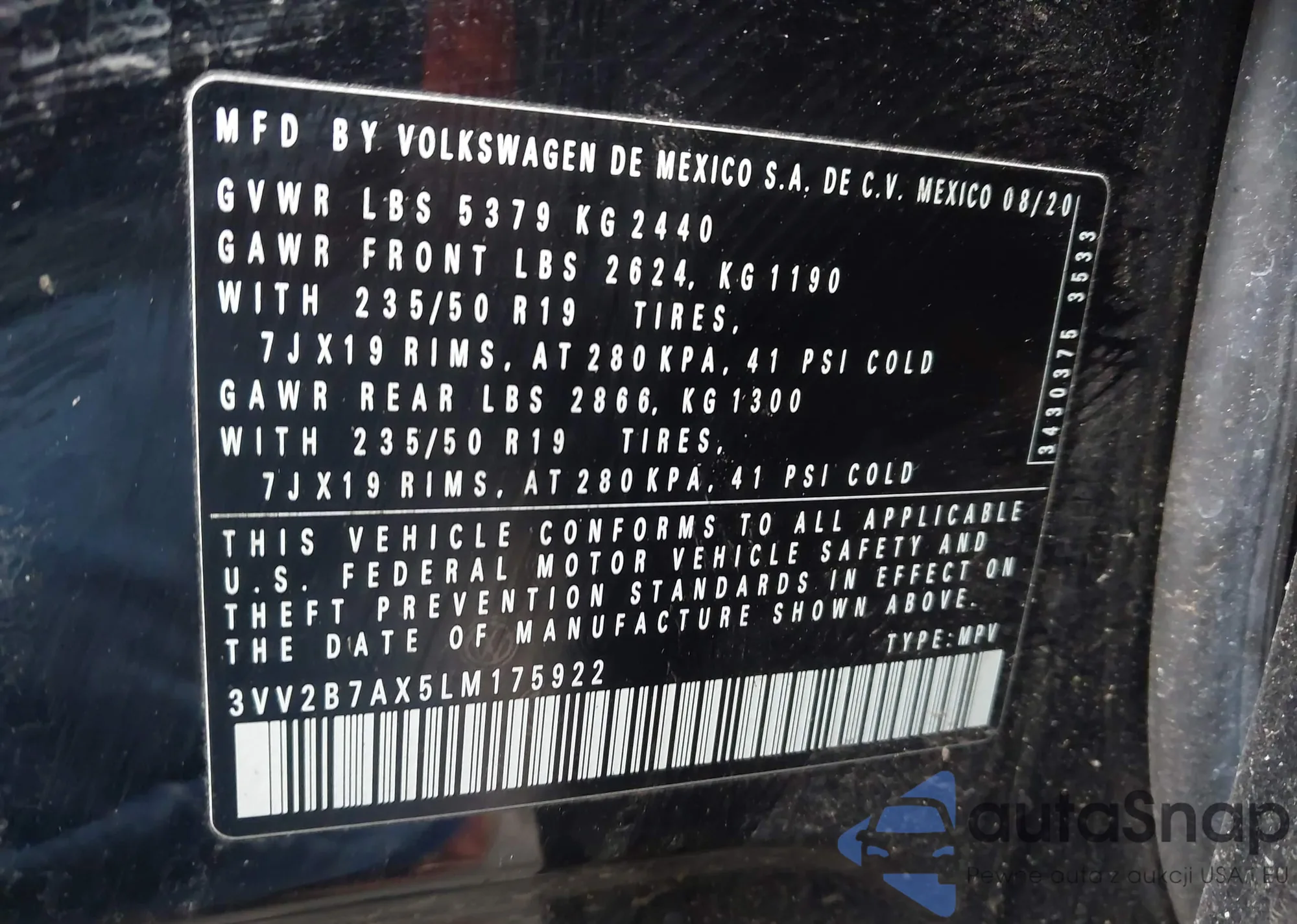 • VIN 3VV2B7AX5LM175922