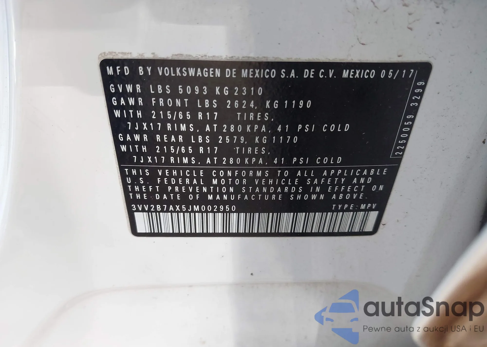 • VIN 3VV2B7AX5JM002950