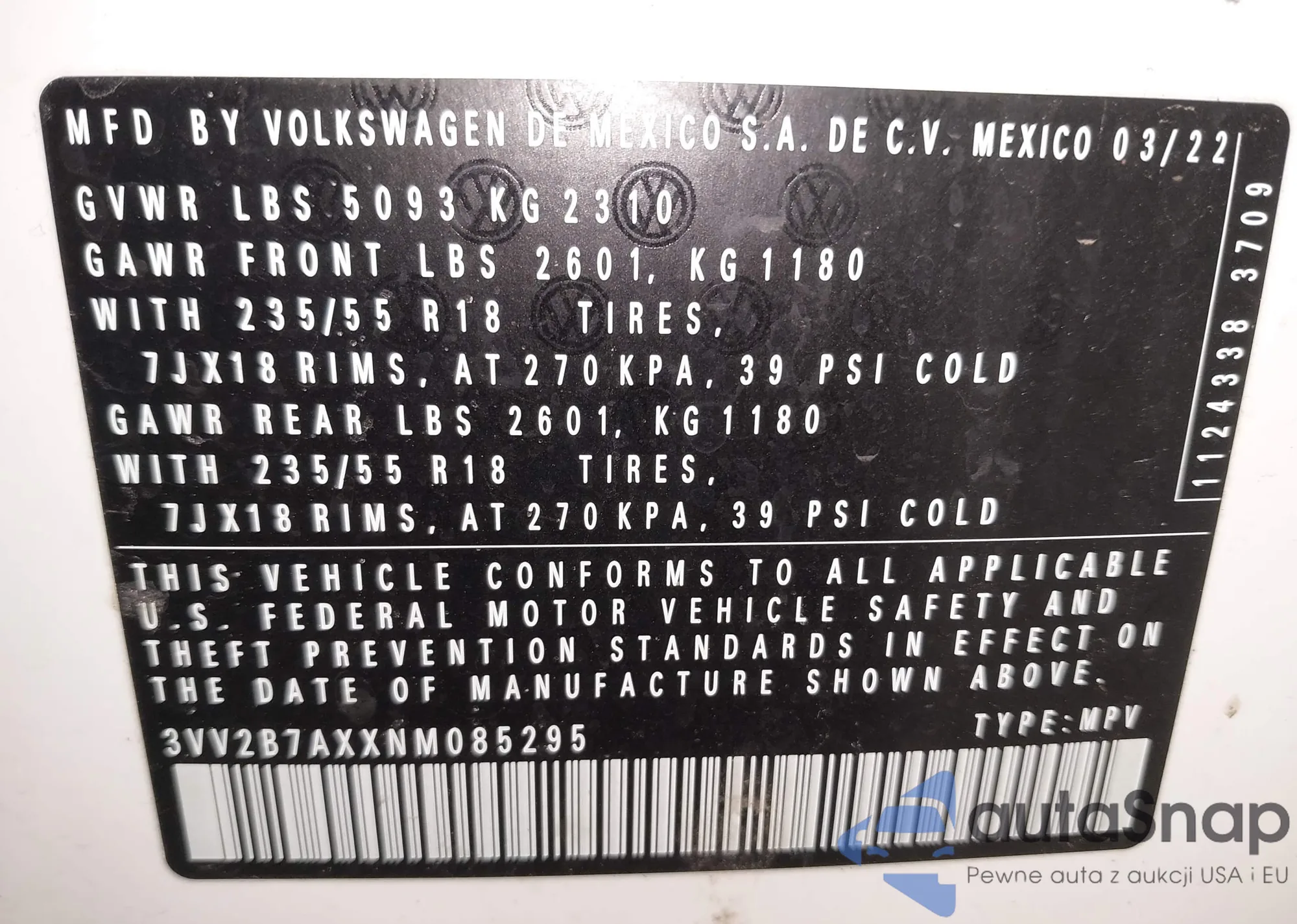 • VIN 3VV2B7AXXNM085295