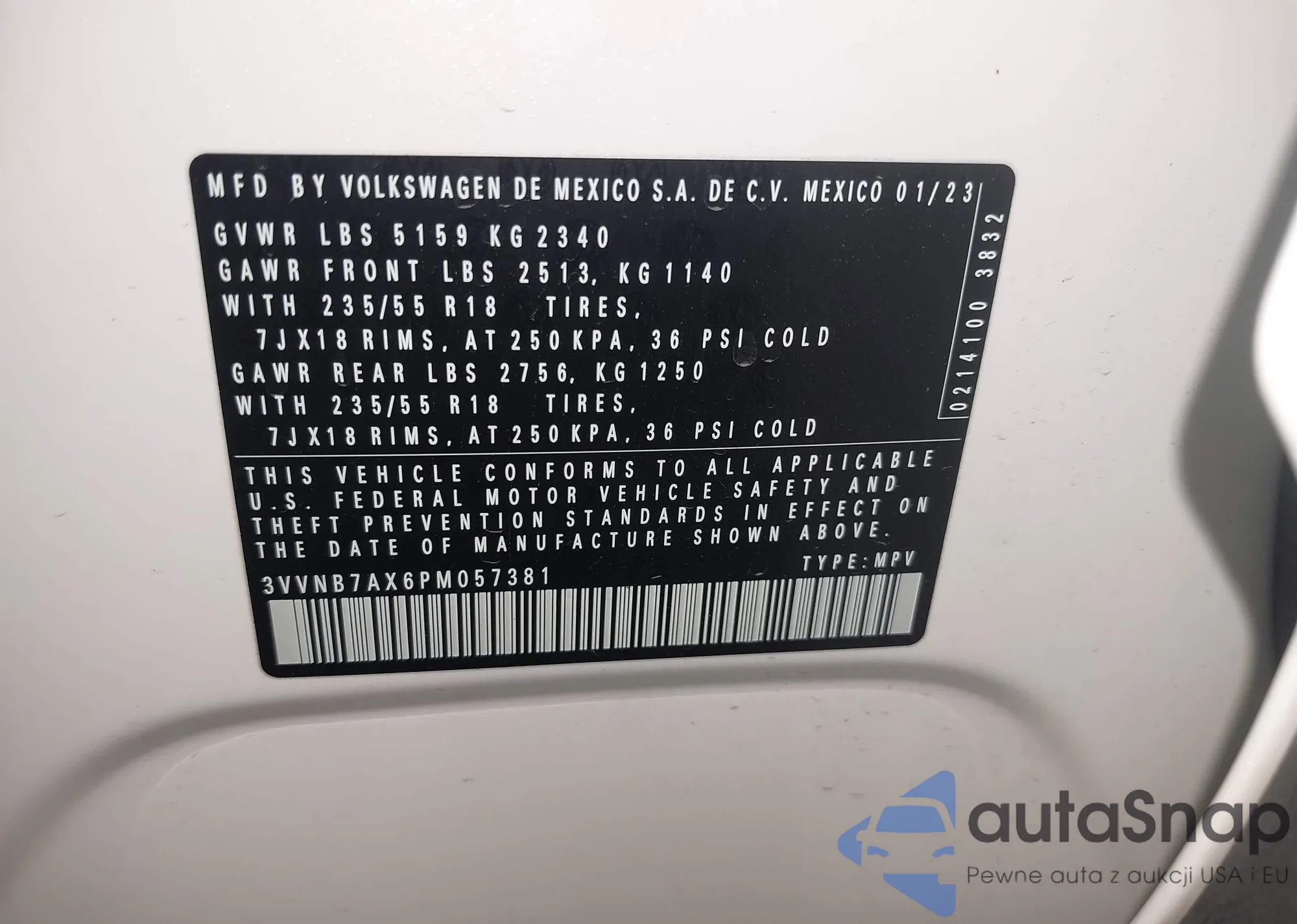 • VIN 3VVNB7AX6PM057381