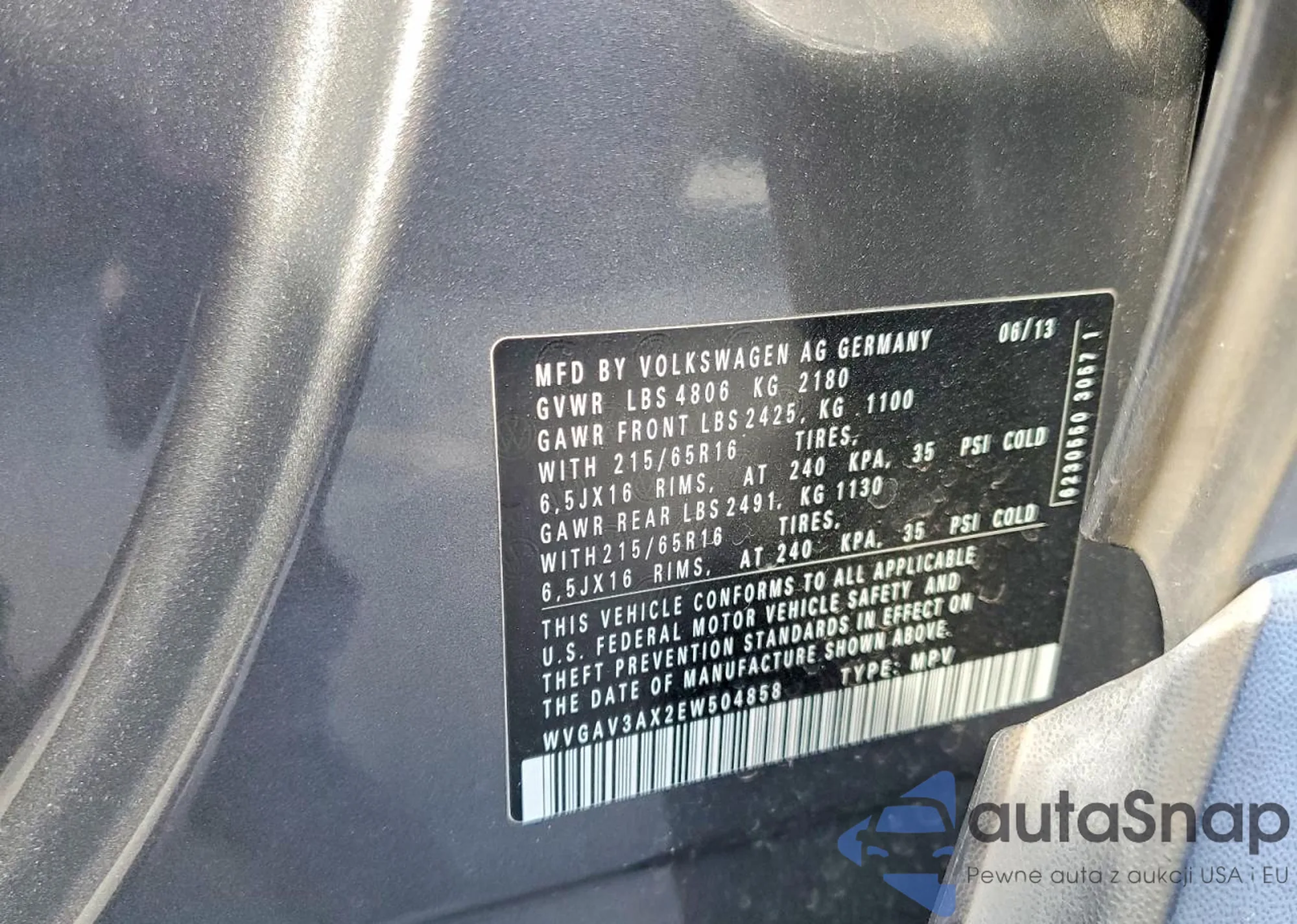 • VIN WVGAV3AX2EW504858
