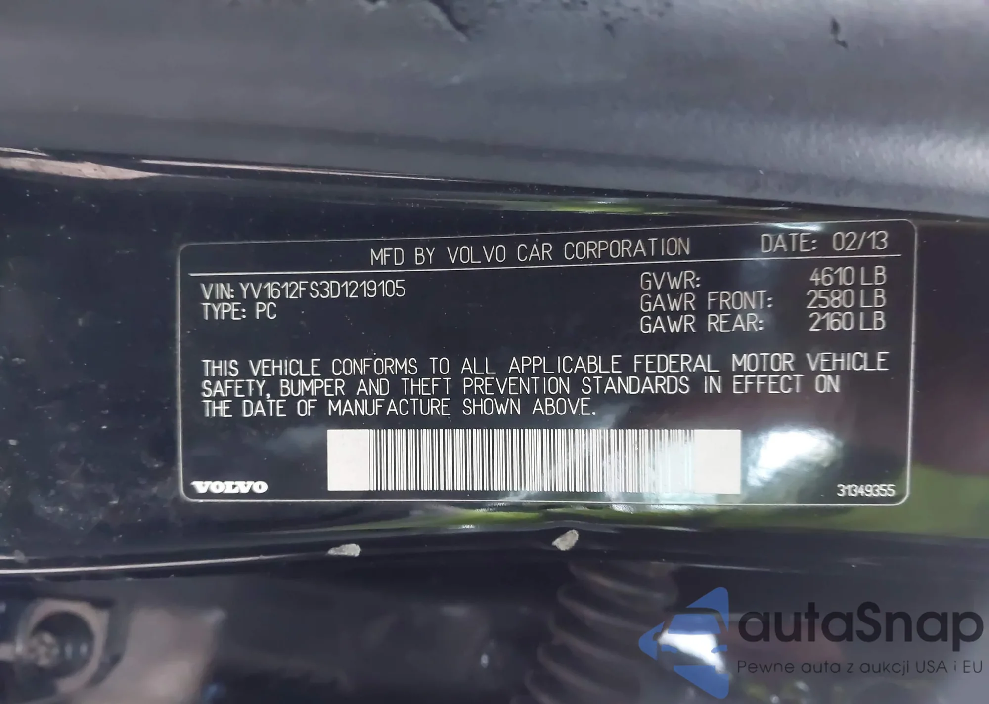 • VIN YV1612FS3D1219105