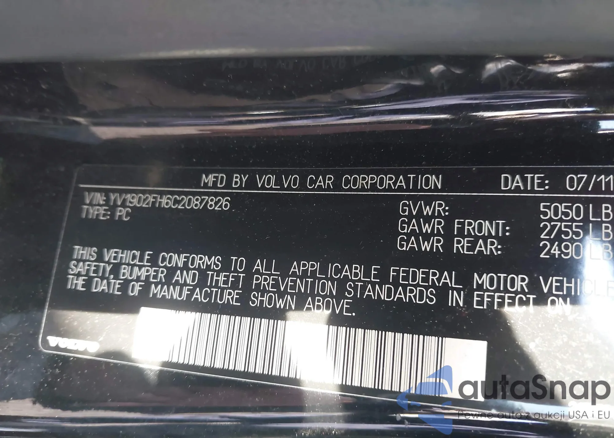 • VIN YV1902FH6C2087826