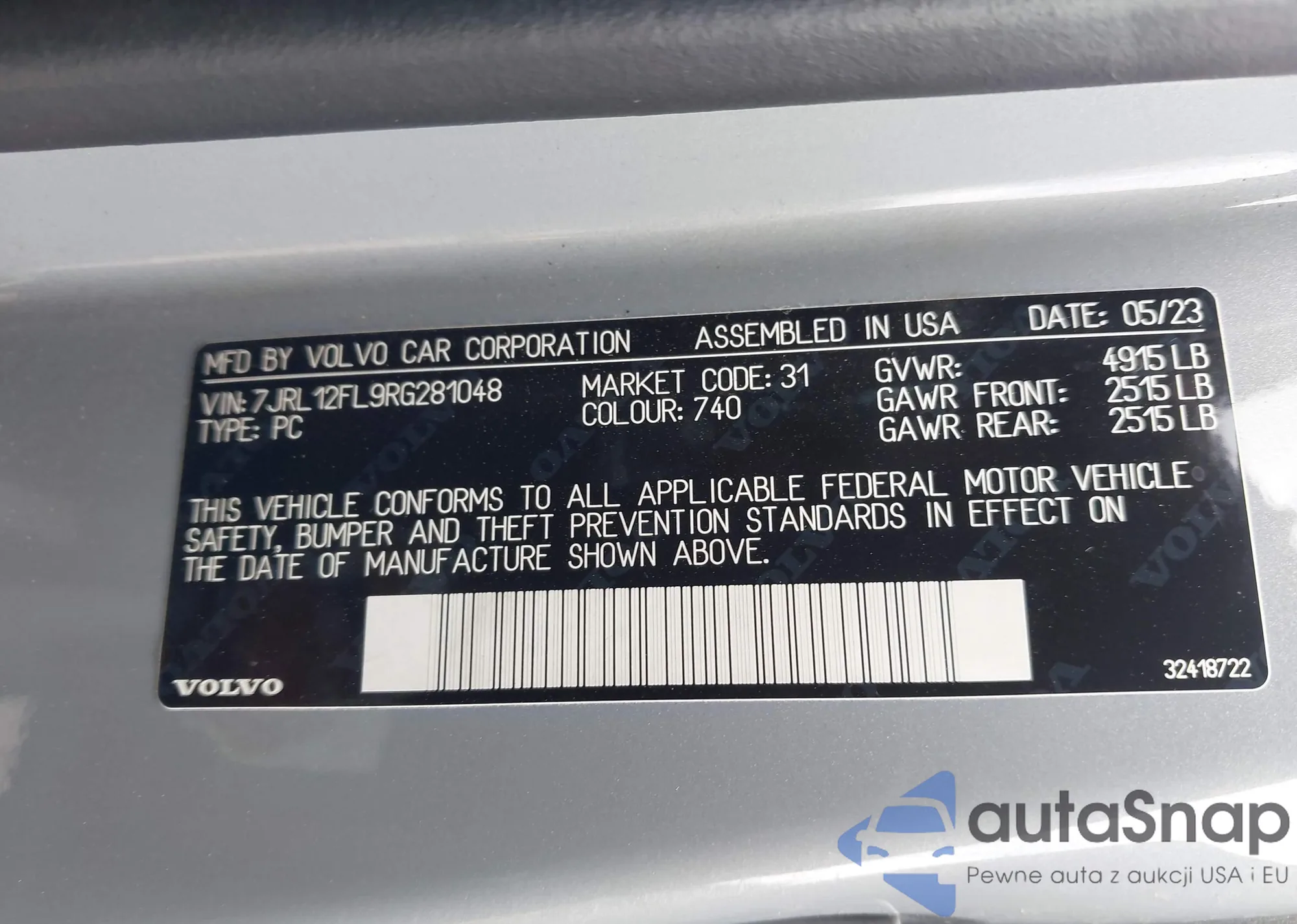 LOT: 44452648 VIN: YV1RS592362503533