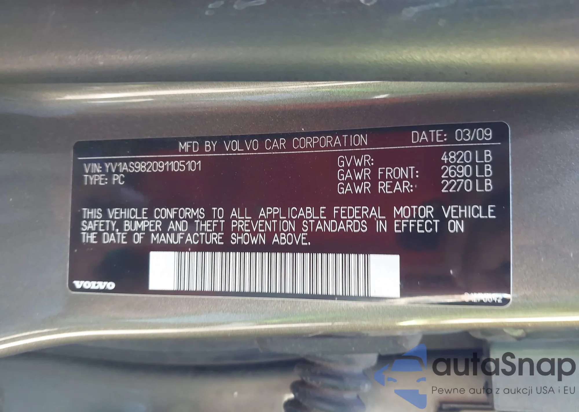 • VIN YV1AS982091105101