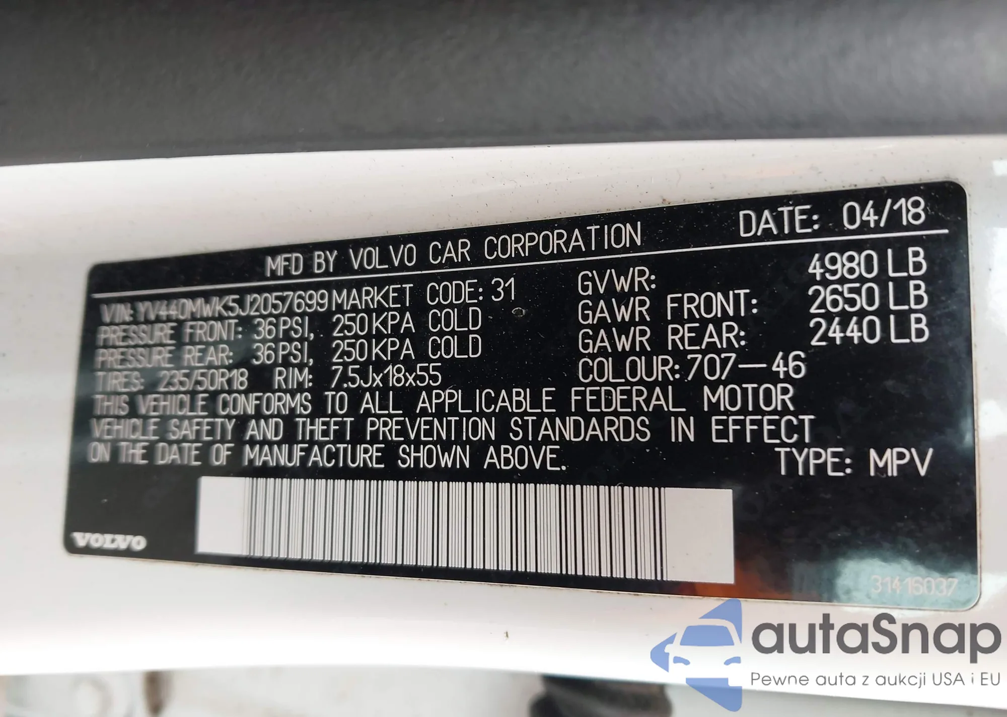• VIN YV440MWK5J2057699