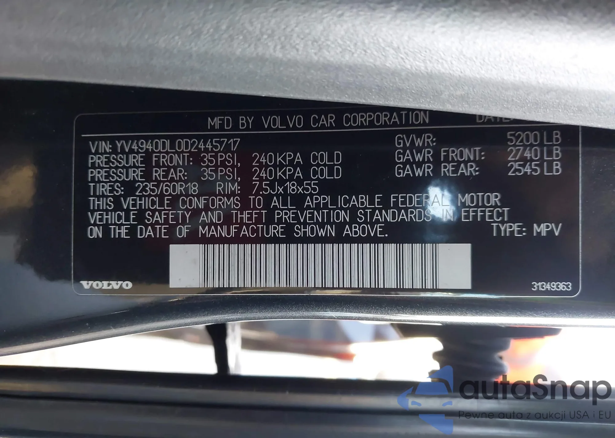 • VIN YV4940DL0D2445717