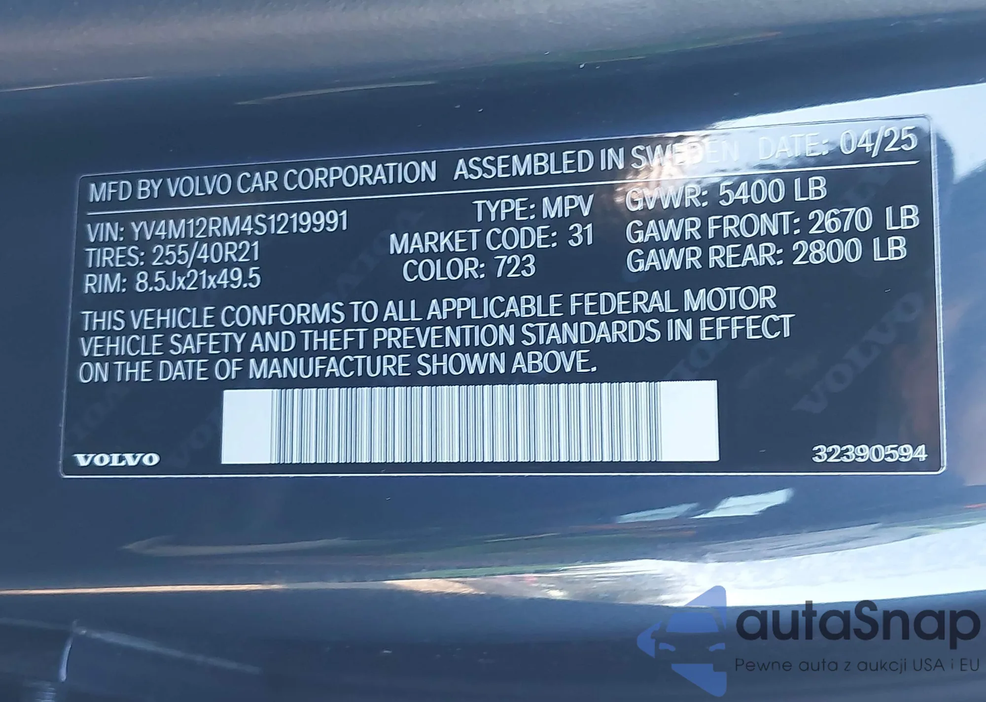 • VIN YV4940DZ7D2421161